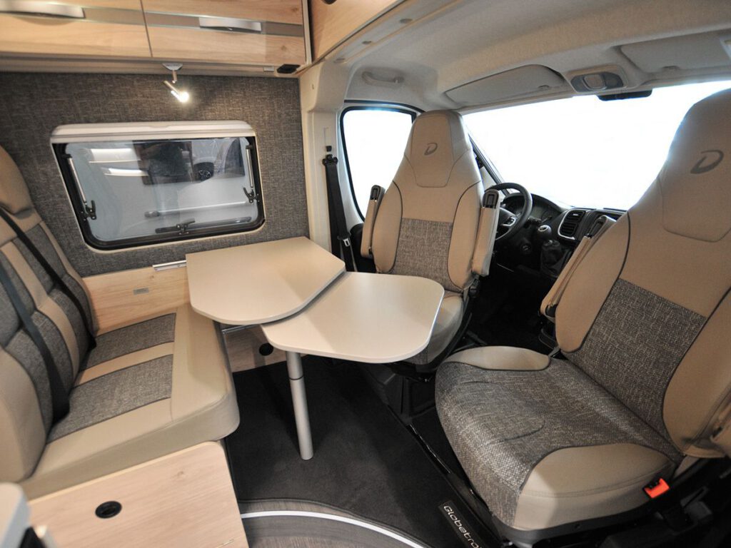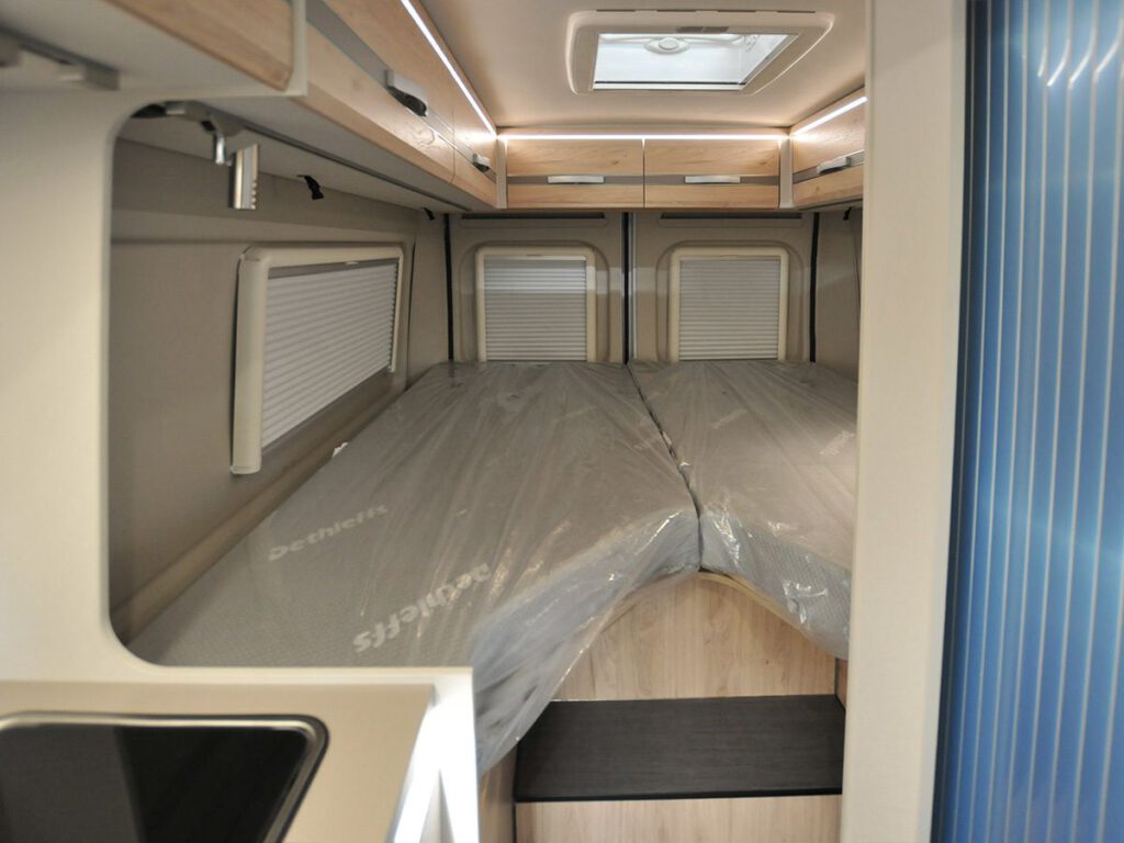 Hierbei handelt es sich um den Detleffs Globetrail 640 S. Das Reisemobil ist für vier Personen zugelassen, aber nur für maximal drei Personen nutzbar. Der Ausbau ist grundsätzlich mit drei Schlafplätzen ausgestattet. Zwei optional aufteilbare Schlafplätze befinden sich im Fahrzeugheck. Man kann diese als Doppelbett ( 198 cm x 181 cm ) für 2 bis 3 Personen nutzen oder auch als zwei Einzelbetten ( 198 cm x 85 cm ). Ein Kinderbett ( ca. 160 cm x 60 cm ) läßt sich mit leichten Handgriffen aus der Sitzgruppe und dem Fahrersitz umbauen oder man nutzt die Option eines speziellen Fahrrerhausbettes ( ca. 185 cm x 70 cm ), welches vorne quer auf dem Fahrer und Beifahrersitz ausgelegt wird. Für drei erwachse Personen ist dieses Reisemobil aus unserer Sicht nicht unbedingt empfehIenswert, aber durchaus nutzbar.